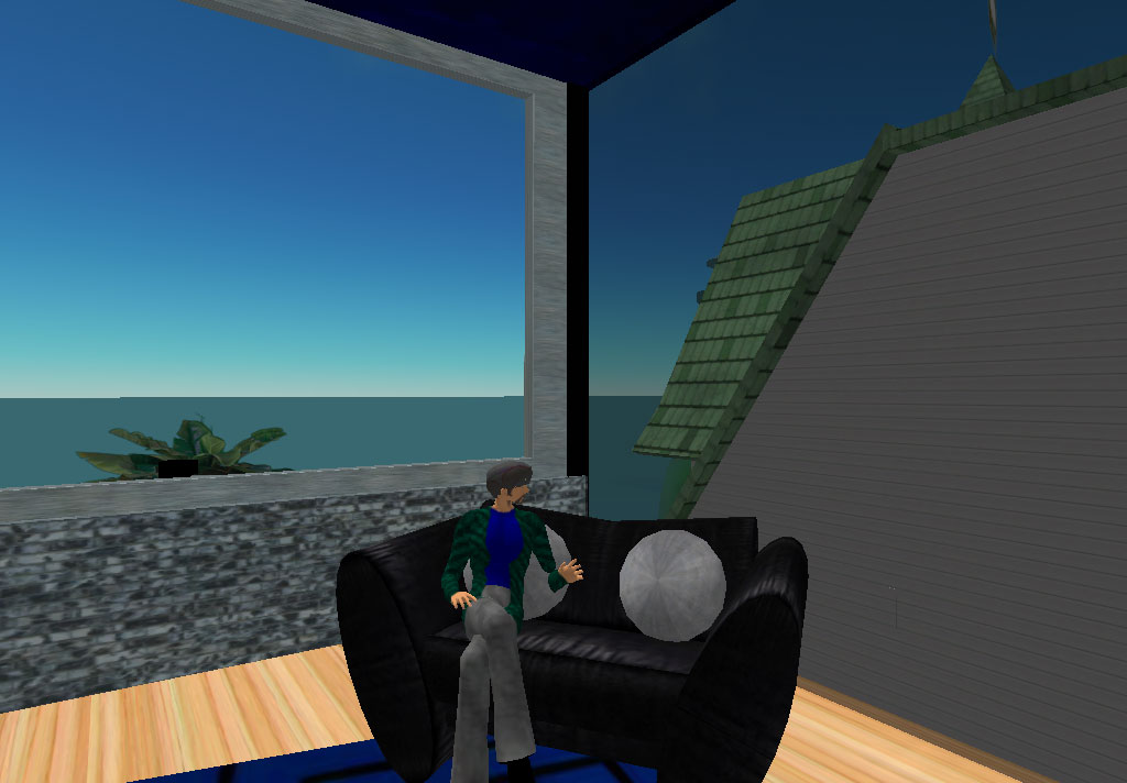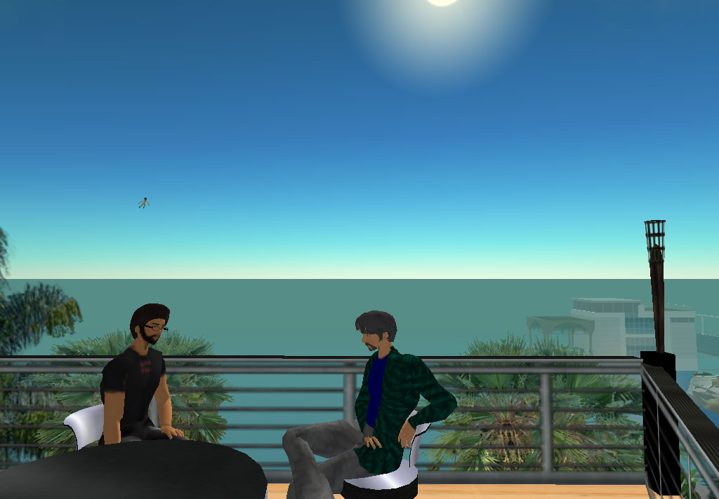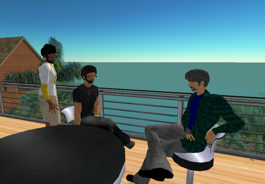 My friends Gustavson and deanpence have also protruded themselves into Second Life, so it's also become a good hangout place for three friends in three distant locations. A recent gathering: